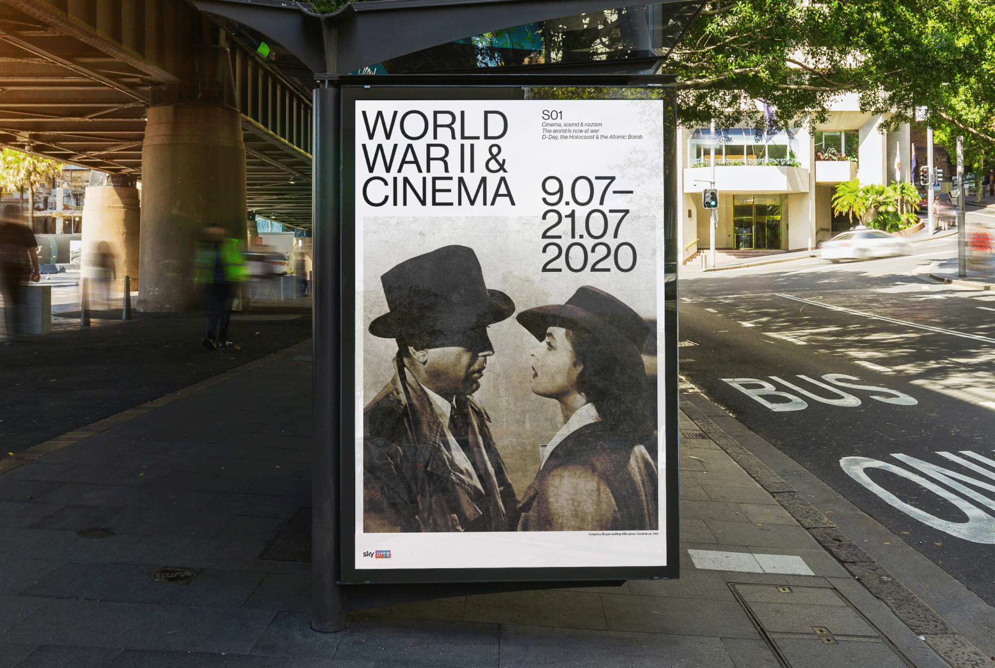 Poster and title sequence design for the documentary series World War II & Cinema; a 3DD Productions co-production with Sky Arts examining how cinema depicted and shaped understanding of the Second World War.